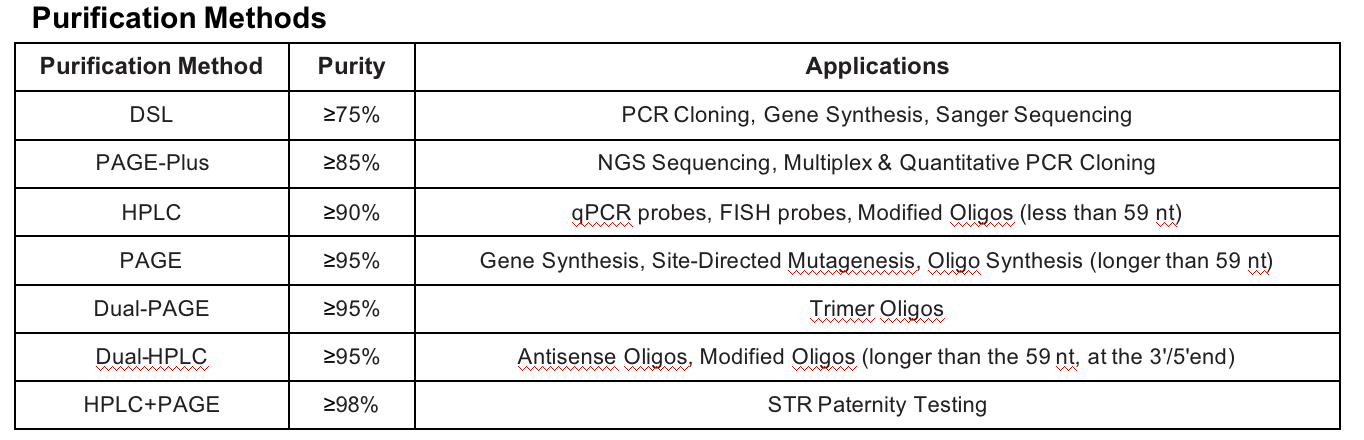 * Longer oligos, 96/384 plate batch oligos or other large scale synthesis are available, please contact us for a quote.