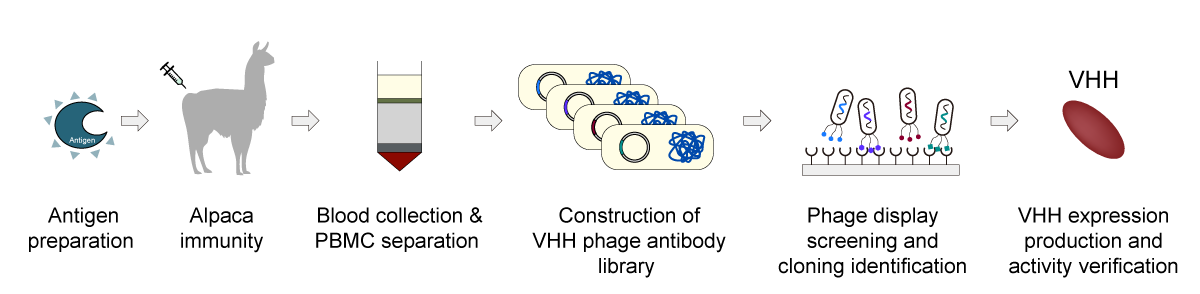 4-6 weeks | Intermediate products (e.g., RNA or cDNA); Provide library QC report, VHH library size of 108–109;Phage Display Nanobody Immune Library (library phage particles 10ug) |