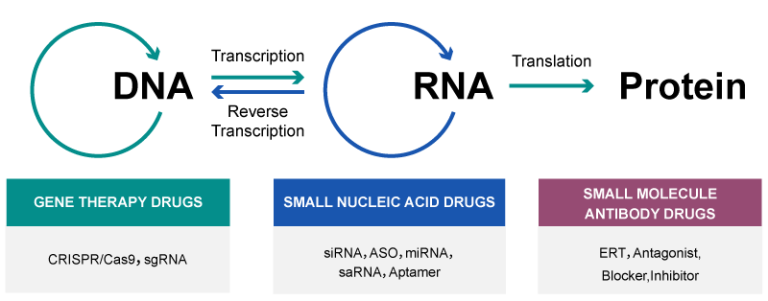 RNA Interference (RNAi):Including siRNA (small interfering RNA) or microRNA, which degrade or block the translation of target mRNAs to "silence" a problematic gene.